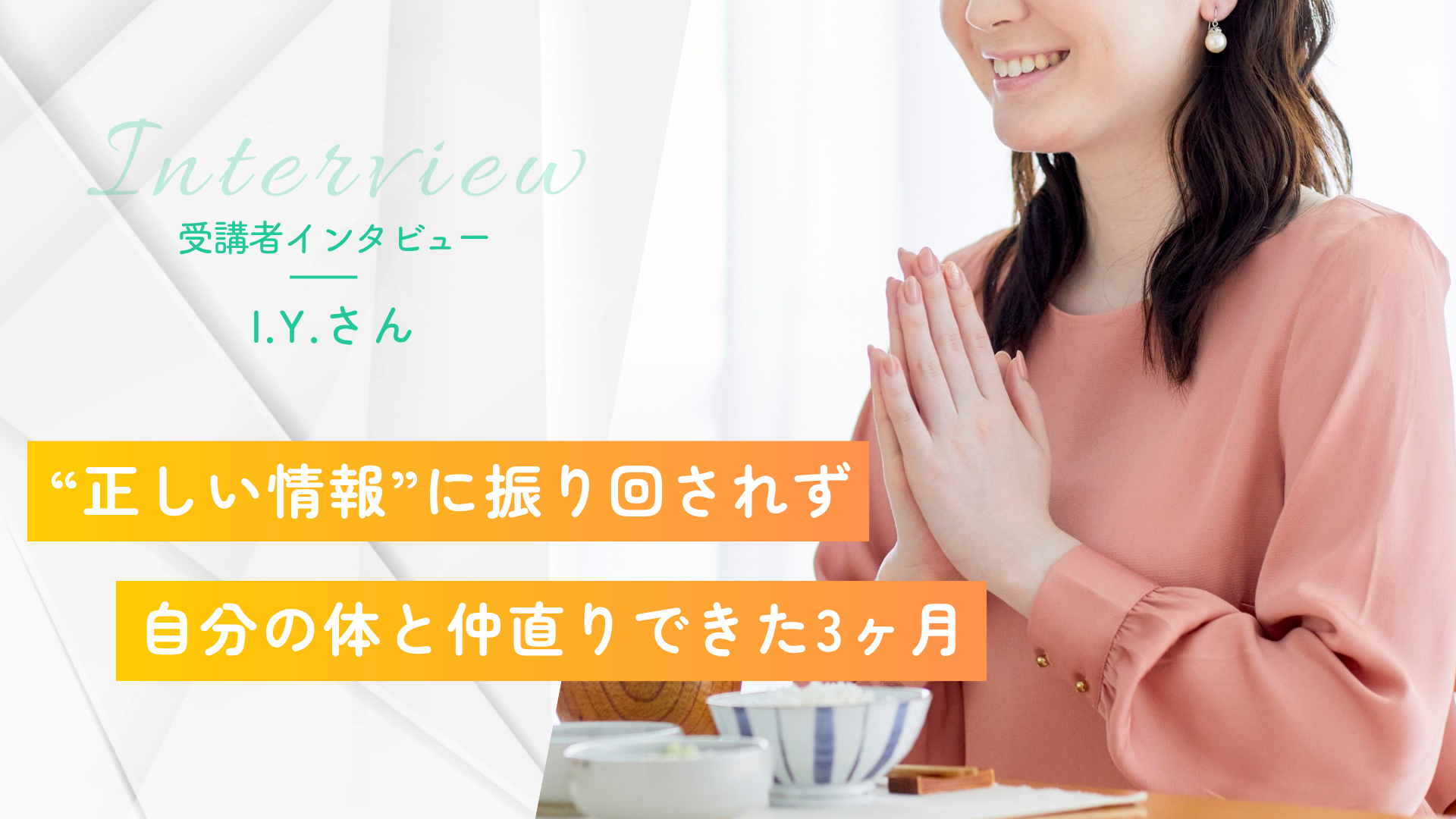 今回は、消化不良や不安感、睡眠の乱れに悩みつつも「自分の体を自分で整えられるようになりたい」と受講を決めた I.Y.さん(仮名)へのインタビューをご紹介します。